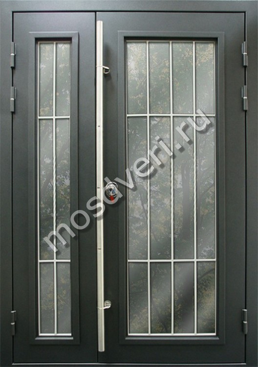 Темная двустворчатая дверь со стеклом — объединяет эстетичность и превосходные защитные характеристики.