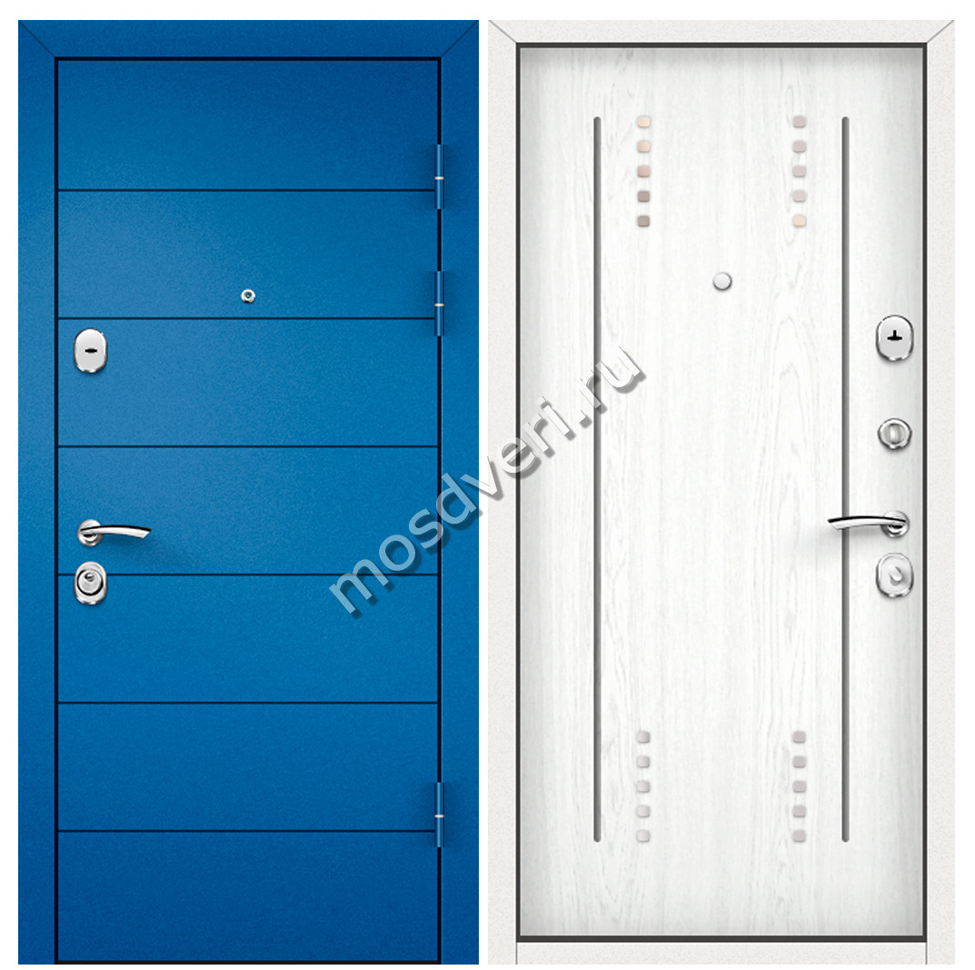 Синие входные двери в квартиру SVK-15 — совмещает современный дизайн и высокую надёжность.